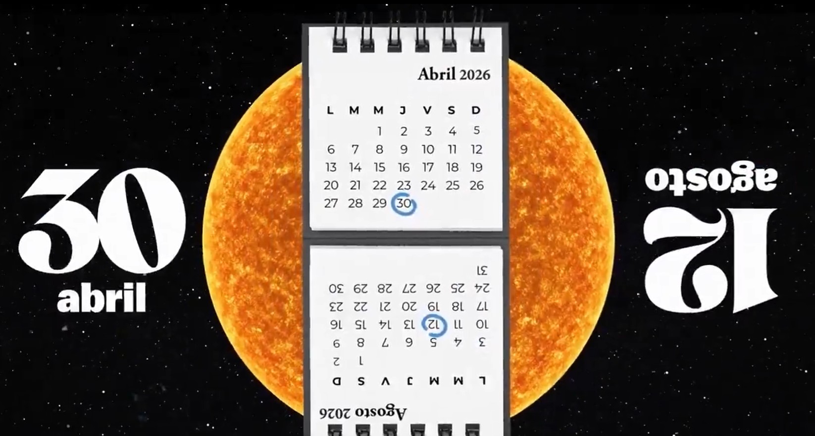 El próximo jueves 30 de abril la ciudadanía española podrá asegurar su observación del eclipse total de sol que tendrá lugar el 12 de agosto de 2026 ya que ese mismo día la mecánica celeste ofrece un mapa real de lo que sucederá en verano.