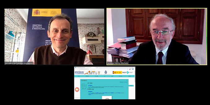 El próximo jueves 28 de mayo tendrá lugar una presentación digital con motivo del lanzamiento de «Enclave de ciencia». En ella, participarán el ministro de Ciencia e Innovación, Pedro Duque; el director de la Real Academia Española (RAE), Santiago Muñoz Machado; la directora de la Fundación Española para la Ciencia y la Tecnología (FECYT), Paloma Domingo García, y el responsable del proyecto por parte de la RAE y académico de la institución, Guillermo Rojo. El acto comenzará a las 11:00 h y podrá seguirse en directo a través del canal de YouTube del Ministerio de Ciencia e Innovación. Toda la información aquí.