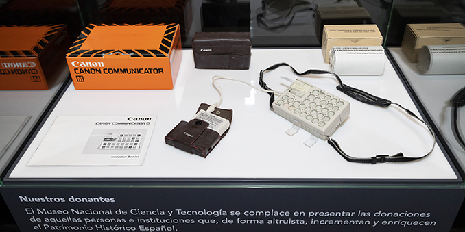La directora del Museo Nacional de Ciencia y Tecnología, MUNCYT, de A Coruña, Marina Martínez de Marañón, ha presentado hoy la nueva pieza que ocupará el espacio “Nuestros Donantes”. Se trata del Canon Communicator, un dispositivo electrónico de comunicación entre personas que permite al usuario mecanografiar mensajes de la longitud que se desee en una cinta de papel. A la presentación ha acudido también la donante de esta pieza, Maria José Díez Seoane, que la adquirió el 29 de mayo de 1989. Este dispositivo estará expuesto en el MUNCYT durante todo el año 2022.