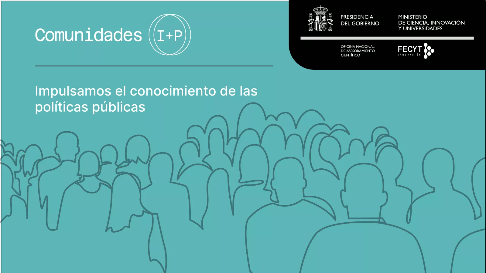 Las Comunidades I+P están concebidas como espacios de cocreación con pilares basados en la formación en asesoramiento científico y el intercambio de información y buenas prácticas entre todos los integrantes de la comunidad. De esta manera, las comunidades se integran en el ecosistema de nacional de asesoramiento científico y que nuestro sistema de ciencia para las políticas públicas se siga nutriendo y asentando como idea fundamental en nuestro sistema de toma de decisiones.