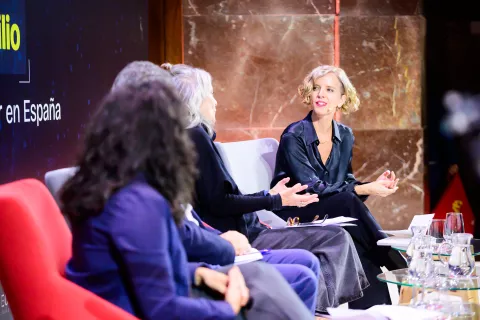 Tras la proyección, la directora general de la FECYT, Izaskun Lacunza, moderó un diálogo en el que participaron Mª Jesús Santesmases, profesora de investigación en el Instituto de Filosofía del CSIC; Ricardo Campos, investigador científico en el Instituto de Historia del CSIC, e Irene Mendoza, investigadora en el Instituto de Filosofía del CSIC.