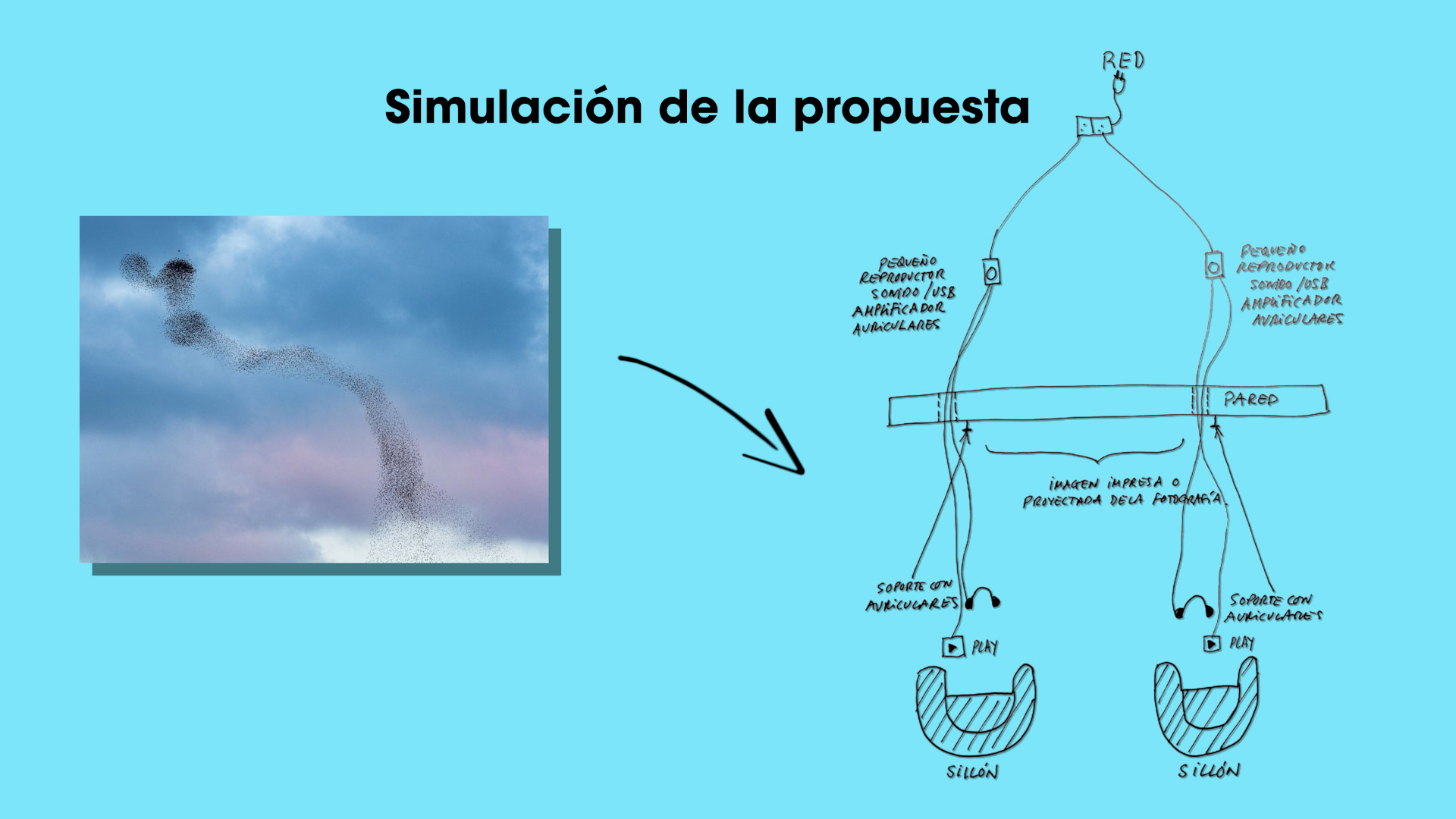 Durante los casi 6 minutos que dura esta composición sonora, podremos acompañar y vivir esas experiencias casi como un estornino más de esa bandada. La pieza acompañará a la exposición de FOTCIENCIA21 en su recorrido por las diversas ciudades y centros donde vaya a ser exhibida.