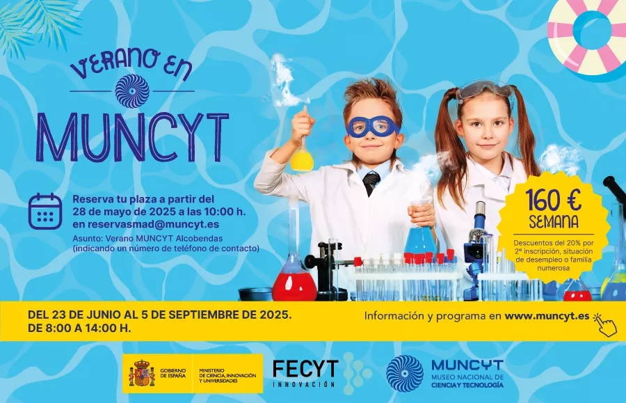 La Fundación Española para la Ciencia y la Tecnología (FECYT) y el Museo Nacional de Ciencia y Tecnología (MUNCYT) organizan la actividad “Verano en el MUNCYT”, dirigida a estudiantes que hayan cursado desde 1º de Educación Infantil hasta 6º de Educación Primaria en el curso 2024-2025.