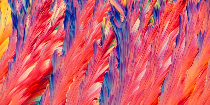 Aunque creamos estar frente a plumas coloridas de algún ave tropical, en realidad vemos las estructuras formadas durante la cristalización de una solución de paracetamol. El proceso se lleva a cabo para analizar las impurezas (trazas metálicas) que puedan haber contaminado la muestra durante su proceso de síntesis. Esto forma parte de los controles de calidad que permiten establecer si los productos cumplen con los parámetros y requisitos legales requeridos.