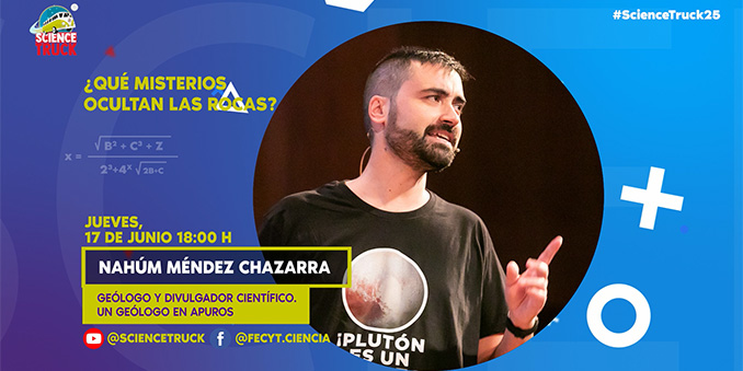 "¿Qué misterios ocultan las rocas?" es el título del programa de Science Truck que se emitió el jueves 17 de junio a las 18:00 horas y que tuvo como invitado a Nahúm Méndez Chazarra, Geólogo y divulgador. En su blog “Un geólogo en apuros", en su canal de Youtube y en Twitter, habla sobre geología planetaria, astronomía y riesgos naturales.