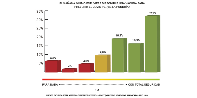 El estudio pone de manifiesto que un 32% de la población se muestra reticente a recibir vacunas contra COVID-19 por reticencias relacionadas con la rapidez de la investigación y no desean ser los primeros en vacunarse, mientras que un 12,7% manifiesta temer efectos negativos para su salud.Sin embargo, la confianza en las vacunas en general sigue siendo alta entre la población española, en línea con estudios previos a la pandemia: la gran mayoría de los españoles considera que las vacunas son eficaces para prevenir enfermedades (tan solo un 4,4% se muestra en desacuerdo) y que son seguras (6% en desacuerdo).