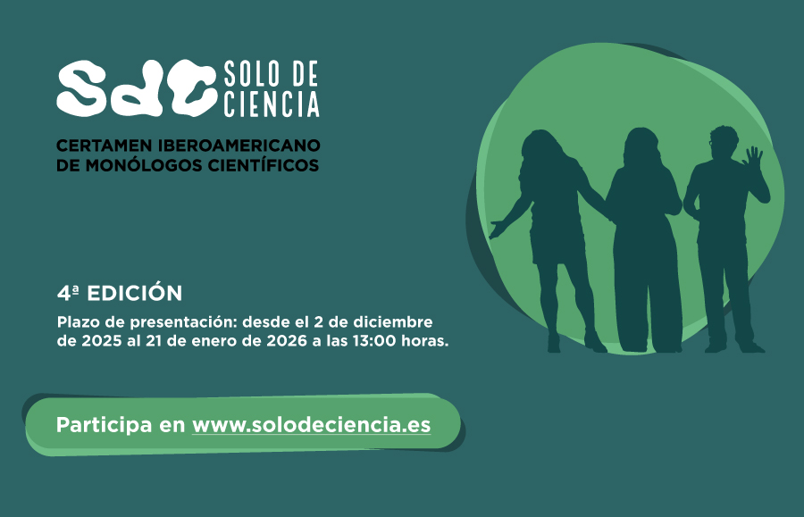 La Fundación Española para la Ciencia y la Tecnología, FECYT, lanza la cuarta edición de “Solo de Ciencia”, un certamen iberoamericano de monólogos científicos cuyo objetivo es fomentar la comunicación de la ciencia en español, estimulando a los que desarrollan sus estudios o su carrera profesional en el ámbito de la ciencia y la tecnología a involucrarse de forma activa en la divulgación en escenarios habitualmente alejados de este tipo de iniciativas.