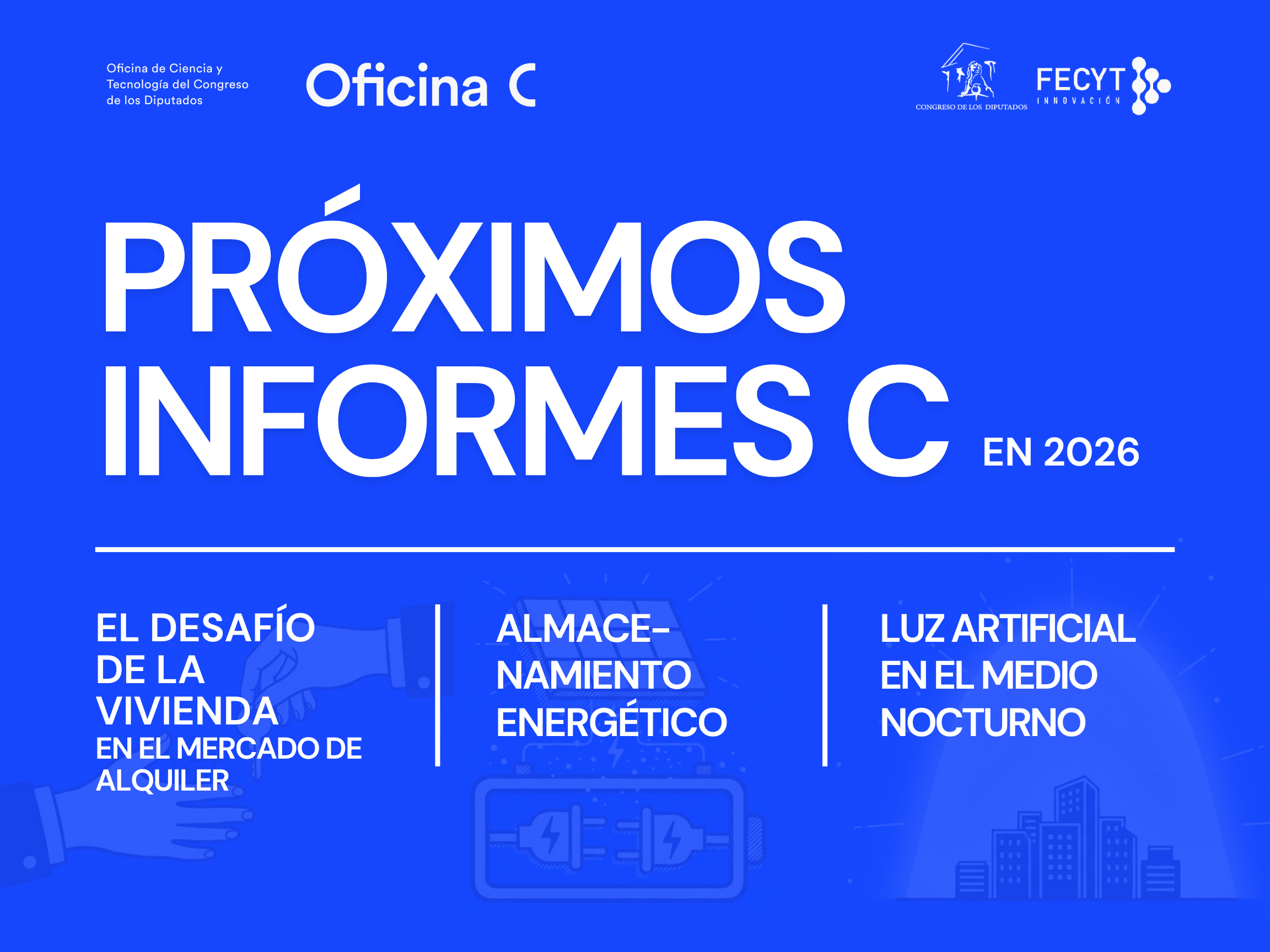 Vivienda en alquiler, almacenamiento energético y luz artificial nocturna, nuevos temas seleccionados para los informes de la Oficina C en 2026