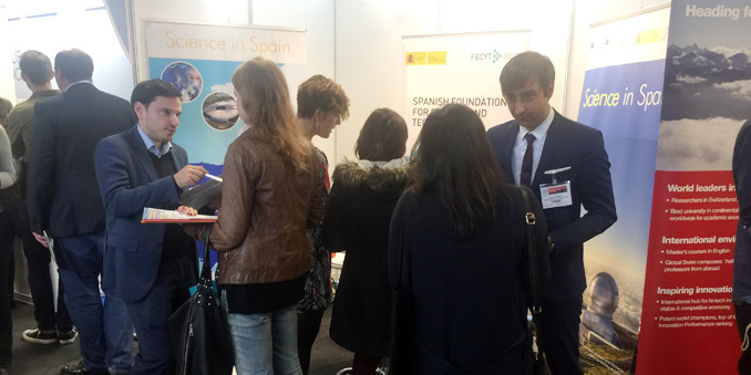Over 1,400 people attended this science job fair, most of them being undergraduates, postgraduates, Master students, PhD students and postdoctoral researchers. The exhibition offers attendees the opportunity to attend many debates about science careers, workshops for CV writing, mock job interviews and a space with plenty of stands from institutions, foundations, research centres and universities from across the globe, where attendees can get additional information. For the second year in a row, FECYT participated in this exhibition with the stand “Science in Spain”.